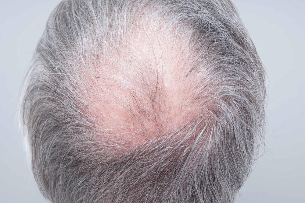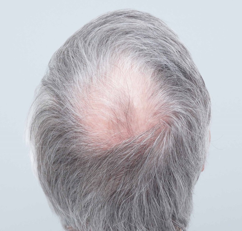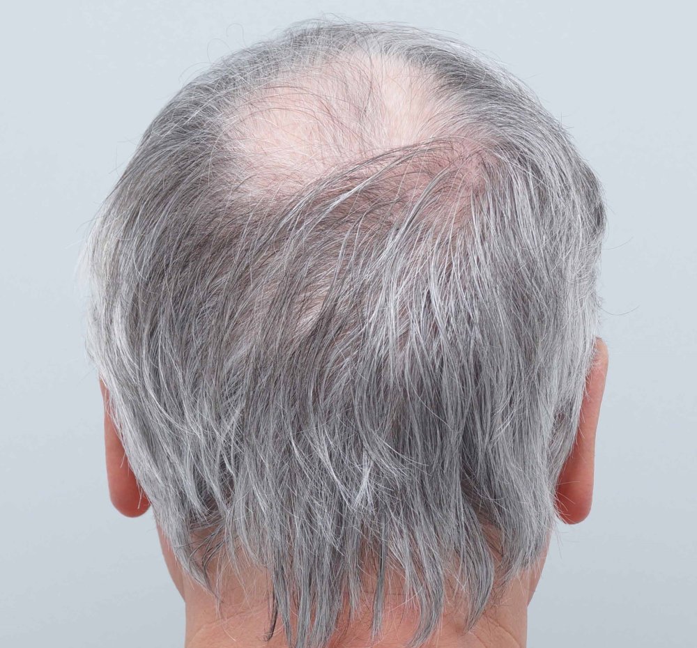 This patient is in his 60 s with loss at the crown only.