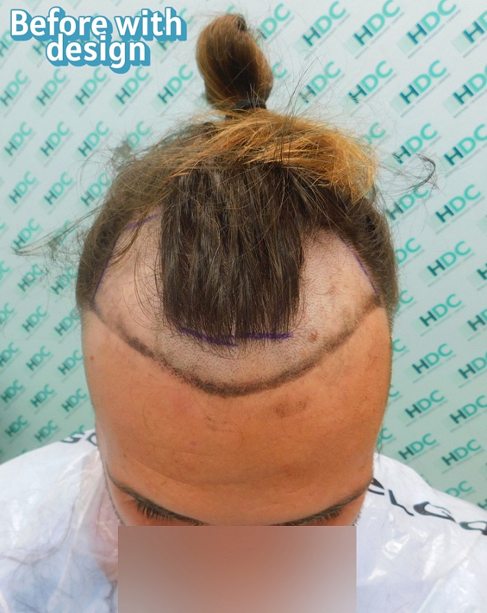We shaved only the mid and lower back donor area, as shown in the photos, to preserve the overall appearance.